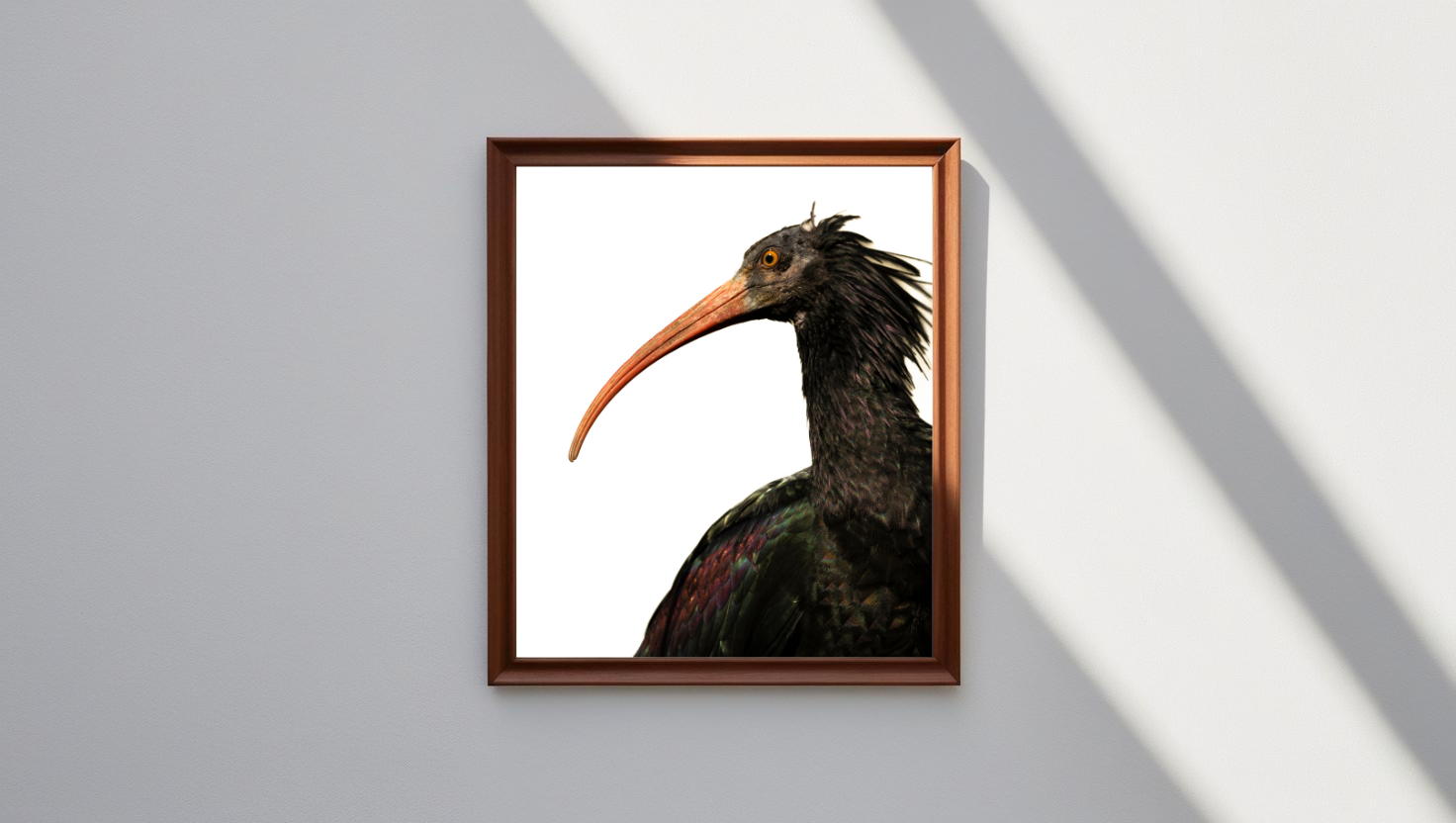 L'ibis chauve (Geronticus eremita) est un oiseau rare au plumage noir brillant, avec une tête nue de couleur rouge ou rose, ce qui lui donne son nom distinctif. Il mesure environ 70 à 80 cm de long et est caractérisé par son long bec incurvé, idéal pour fouiller dans le sol à la recherche d’insectes, de petits reptiles et d'invertébrés. Il vit principalement dans des régions semi-arides ou rocheuses, notamment au Maroc et en Turquie, où il niche sur les falaises.
